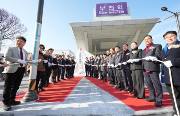 • [시경신문, 김승련기자] 부산 부산진구가 5일 오후 부전역 관광 인프라 개선사업의 일환으로 추진한‘부전역(고속철도)맞이길 조성사업 상징조형물 제막식’을 개최했다.