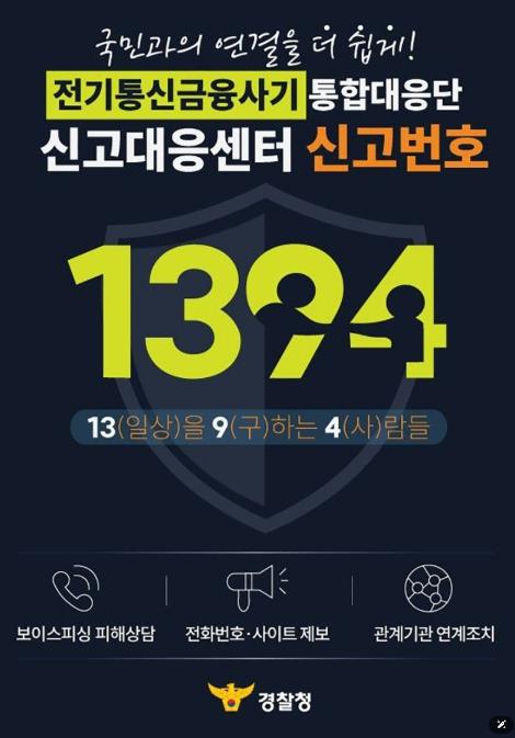 • 경찰청, 전기통신금융사기 통합대응단 신고번호 '1394'