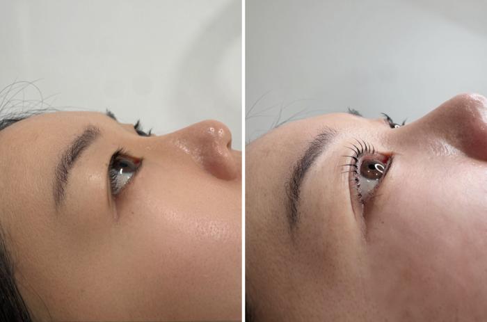고객의 눈매와 기존 속눈썹 상태를 확인한 뒤 디자인 방향을 안내한다.