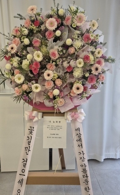꽃나라의 가장 큰 특징은 오브제 화환과 화한 작업에 있다. 흔히 재사용되는 조화나 반복 제작되는 구조물이 아닌, 재탕 없는 100% 생화 작업을 고집한다. 한 번 쓰고 끝나는 화환이 아니라, 그 순간을 위해 새롭게 디자인하고 제작하는 방식이다. 이는 단순한 고급 전략이 아니라, 환경오염을 줄이고 화훼 농가를 살리는 선택이기도 하다. 꽃나라의 화환과 화한은 ‘버려지는 꽃’이 아닌 ‘존중받는 꽃’으로 완성된다.