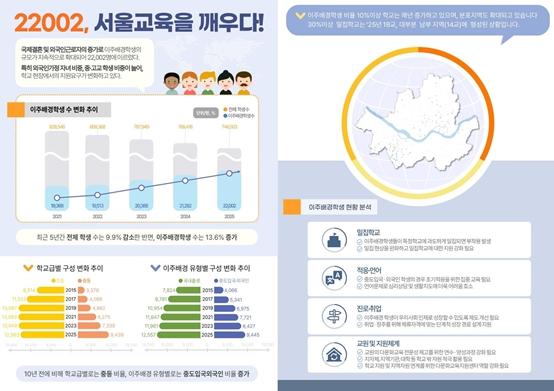 2025년 4월 1일 기준 서울의 이주배경학생은 22,002명으로 최근 5년간 13.6% 증가했다.