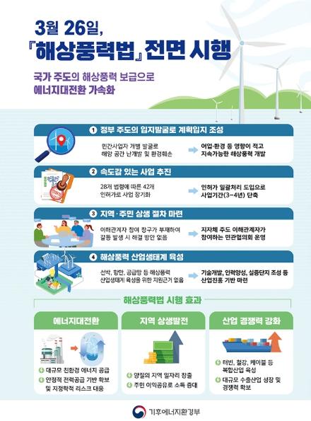 • 기후에너지환경부, 3월 26일, 「해상풍력법」 전면 시행